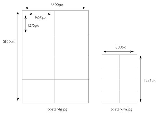Save all of your sketches into individual folders named loop1 through loop8. Also save two jpgs of your poster. Name the first poster-lg.jpg and export it at 3300px by 5100px. Name the second one poster-sm.jpg and export it at 800px by 1236px (see diagram below). Place all of these files and folders into another folder named iteration and upload it to the server.