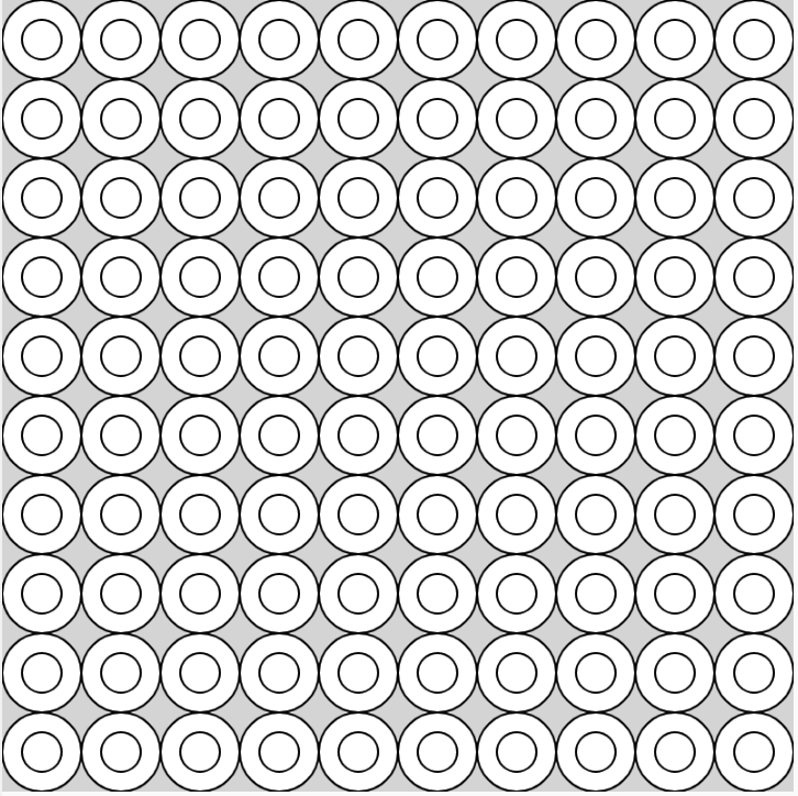 Draw three circle to create a target symbol. Code it in a way that allows you to change the size of target (with all three circles) by changing the value of only one variable.