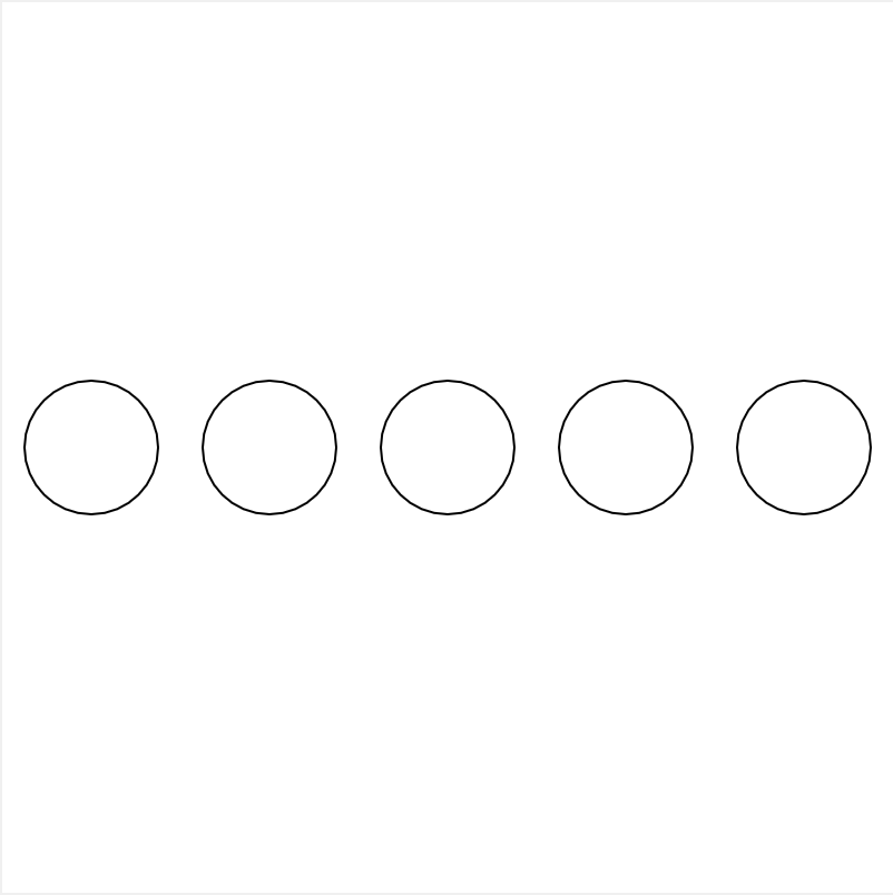 - Now rewrite that code using a for loop to draw the same line of circles.